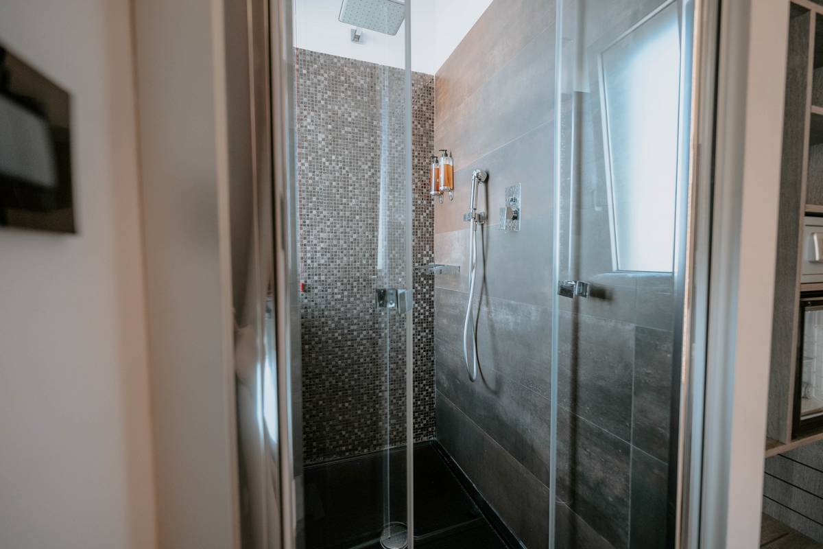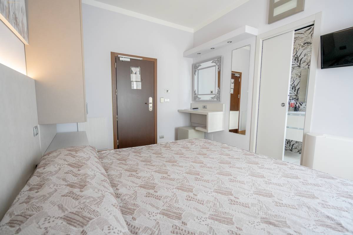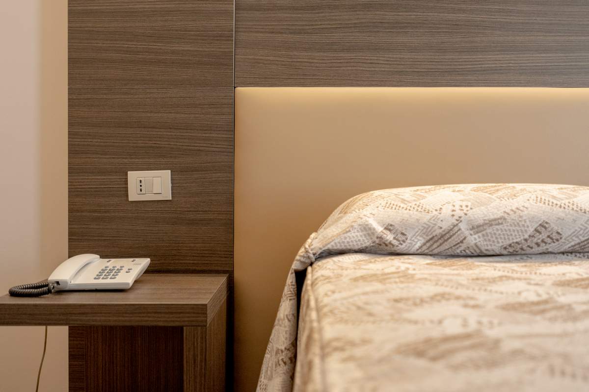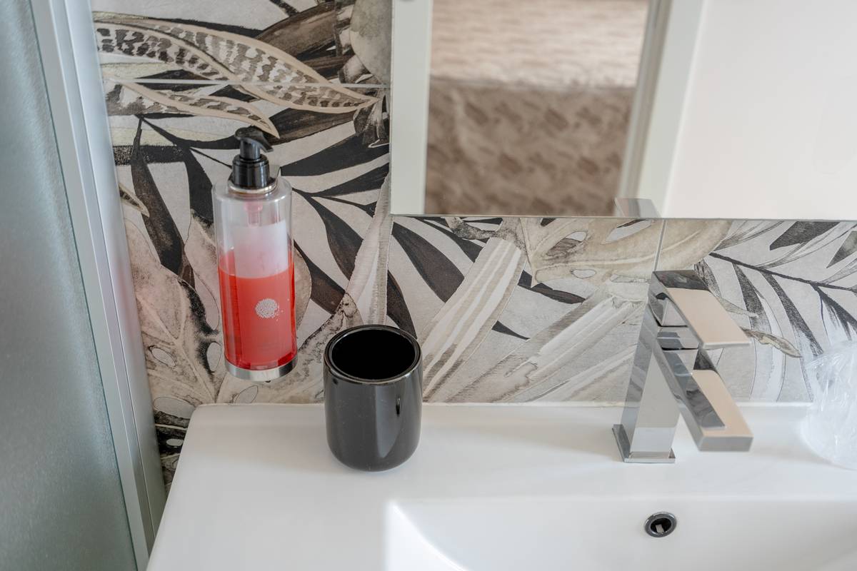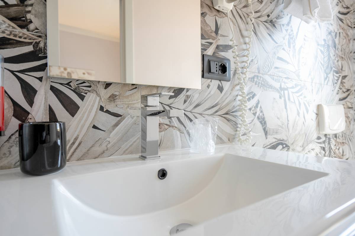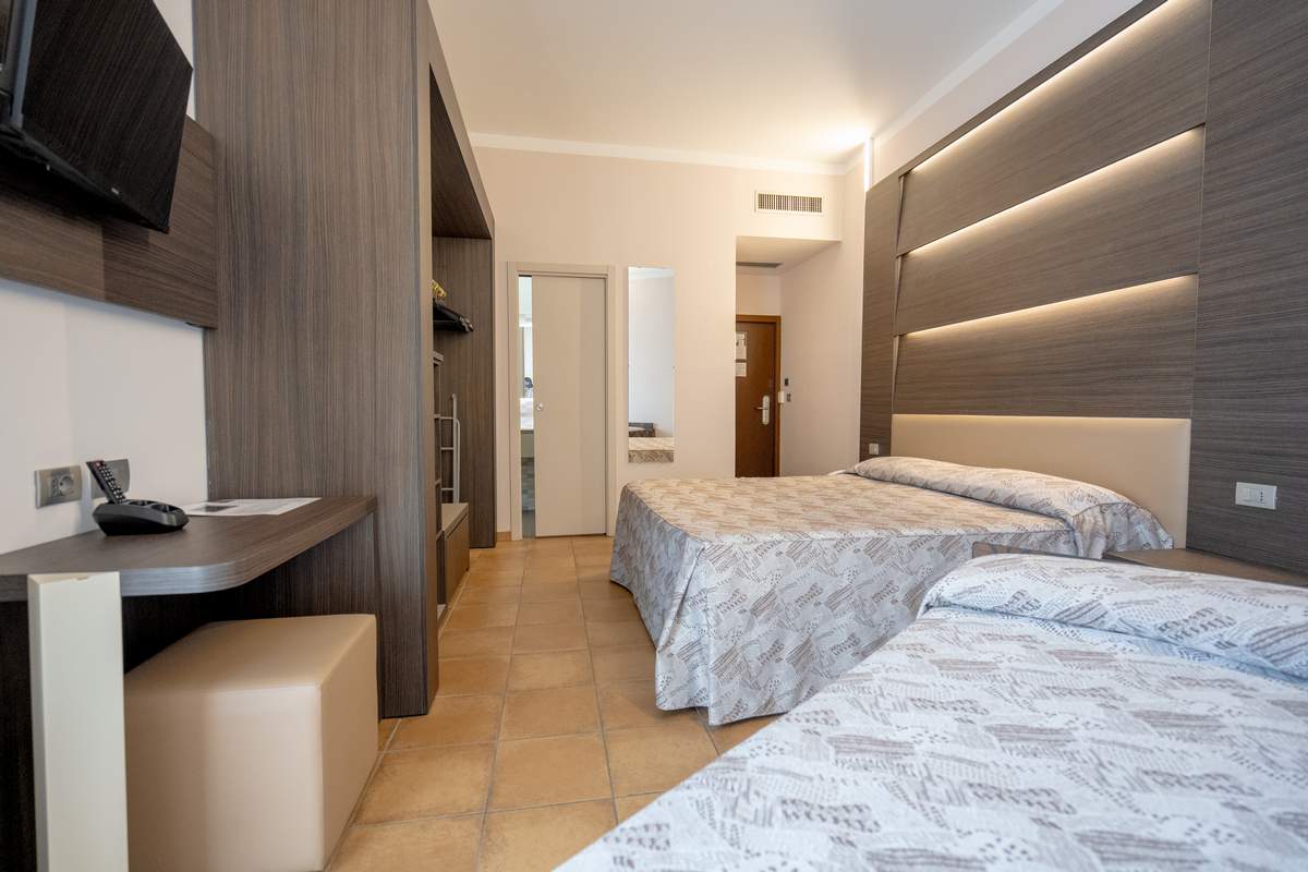Camera con letto matrimoniale o due letti singoli (secondo disponibilità) arredata in stile moderno e bagno privato finestrato con asciugacapelli e set di cortesia.